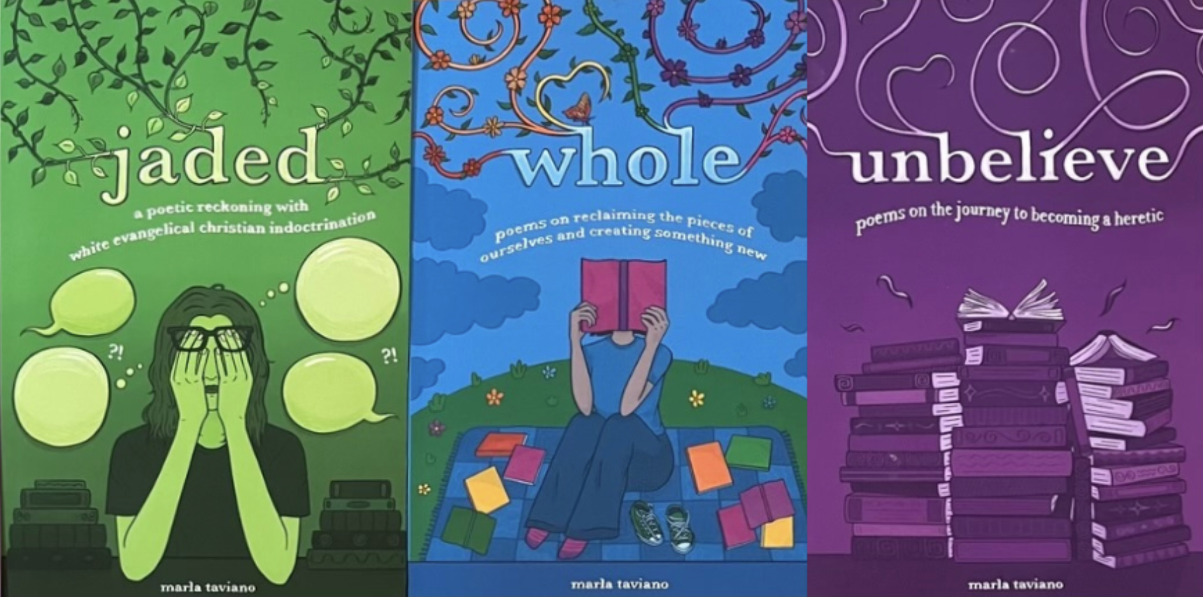 - Purchase Marla’s poetry collection—unbelieve, jaded, and whole—as well as her latest release, what makes you FART?